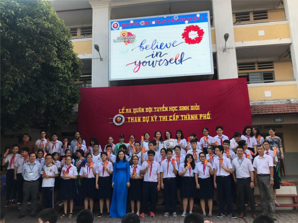 Cũng trong tiết chào cờ, nhà trường cũng vinh danh và khen thưởng cho các em học sinh đạt thành tích cao trong kì thi giao lưu học sinh giỏi khối 8 do phòng GD và ĐT quận 1 tổ chức.